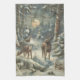 Reindeer Christmas Tree Evergreen Forest Snow Tea Towel