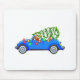 Reindeer driving a beetle with christmas treeb mouse pad