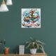reindeer flying aeroplane poster