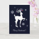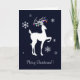 Christmas Card for the Holidays. Silhouette reindeer design with colorful Christmas Lights, dark background and snowflakes