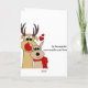 Adorable reindeers are in love. His girl caresses him with her head and ear. He always loves it when she wears her big red bow. This christmas/romantic greeting card would be perfect for those love birds out there. Give some extra love this holiday season to the love of your life. He or she will love it.