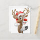 Reindeer in Santa Hat Pointing from Behind Sign Holiday Postcard