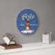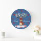 Fun cute graphic clock featuring a illustration of a reindeer with red nose knee deep in snow. Customise with your own seasonal greeting. This example reads Merry Christmas. Uniquely designed by Sarah Trett.