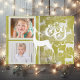 Beautiful vintage inspired holiday photo cards with white reindeer on a mustard green background with muted snowflakes, text that reads Joy, and areas you can easily customise with two photos, your names, and the current year. Photography © Storytree Studios, Stanford, CA