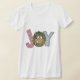 Christmas T-shirts, mugs, cards, stickers, tote bags, magnets, and other Christmas holiday clothing and gift items featuring a reindeer and text that reads "Joy".