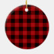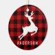 Reindeer Monogram | Deep Red Buffalo Plaid Ceramic Tree Decoration