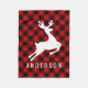 Reindeer Monogram | Deep Red Buffalo Plaid Fleece Blanket