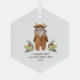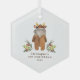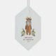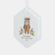 Reindeer Outfit Baby's 1st Christmas Ornament. An elegant hexagonal glass ornament decorated with a cute watercolor design of a baby reindeer outfit and Christmas floral elements. Personalise the template with baby's first name (possessive form with apostrophe + S) as well as year. © Kimbellished, LLC