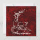 A happy reindeer stag against a red background with intricate border.