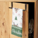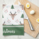 Celebrate the holiday season with this customisable kitchen tea towel that features a cute reindeer pattern accented with decorated Christmas trees, holly berries, and delicate snowflakes. Two customisable text areas with the phrases, “Oh Deer,” and, “It’s Christmas Time,” add an extra touch of charm. Personalise this design with your own text or name to create a one-of-a-kind gift for people who love to cook, entertain, or add a personal touch to holiday celebrations.