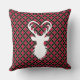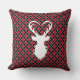 Reindeer silhouette on black and red chequered Throw Pillow. Black stripes have a touch of rustic style.