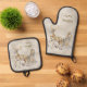 Beautiful Reindeer Sleigh Holiday Oven Mitt & Pot Holder Set
