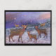 Graphic illustration of reindeer in the winter in the Northern lights.