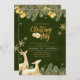 Invite friends and family to a festive Christmas party with this elegant gold and green invitation. Featuring reindeer, snowflakes and pine branches, it sets the perfect tone for a holiday gathering. To celebrate the season december in style.