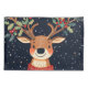 A happy reindeer adorned with holly berries and mistletoe in its antlers, set against a magical blue night sky filled with stars.