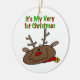 An adorable baby's 1st Christmas design on first Christmas T-shirts, bodysuits, magnets, cards, stickers, keepsake ornaments, and more featuring a cute reindeer design and red and green text that reads It's My Very 1st Christmas!