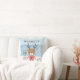 Reindeer Winter Birth Stats Nursery Keepsake Throw Pillow. Design is a rustic boy reindeer wearing red and white pyjamas, while holding a banner. Background design is a blue mountain landscape and a bed of snow. Text is in brown, with a mixture of slightly distressed fonts chosen. Personalise the template by editing the text fields with your child's information and birth stats. Perfect for a winter baby as a shower gift or for creating a keepsake of your own. Any questions? Feel free to send me a message. ©Kimbellished, LLC