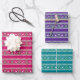 These elegant and festive wrapping paper sheets are versatile and can be used for giving gifts or art and craft projects. It is ideal for any occasion such as Christmas, birthdays, weddings, bridal showers, baby showers, anniversaries or general gifts. The design features a winter fair isle pattern with reindeers and Christmas trees on a pink, purple and teal blue background. This is perfect for Christmas and the winter holiday.