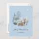 Cute Merry Christmas postcard featuring a watercolor winter scene with a buck and a doe in a snowy forest and shining stars above them. Easily personalise this beautiful holiday postcard with your family name, return address and additional text as desired.