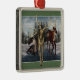 Beautiful holiday reindeer in a snowy winter background digital art silver frame premium square ornament. A wonderful addition to your holiday decorating, or gift giving and are appropriate for both Christmas and Yule. This design features 3 deer in the centre of a beautiful snowy winter background, which appears as if the deer is jumping off the ornament. The artwork is displayed inside an elegant silver frame style ornament with a red ribbon. This design is available on different shaped ornaments. For more Christmas and Yule holiday themed styles of ornaments, gifts, stickers, tags, cards, stamps and much more please visit our store!