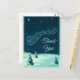 A Christmas thank you postcard with a vintage illustration of Santa in his sleigh being pulled by his reindeers. Little stars sprinkle the night sky. Snow covered pine trees on the ground. Vintage retro feel.