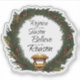 a stunning wreath adorned with holly and pine cones, the sticker also showcases the Nativity scene, a reminder of the true spirit of Christmas.