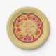 This inspirational Fall and Thanksgiving paper plate depicts a lovely, rustic wreath in autumn watercolors of yellow, brown, orange, pink and red flowers, foliage, chestnuts and acorns. The wreath is bordered by an orange and a brown thin stripe for accent. In the centre typography reads "Let us rejoice and give Thanks!" These are the perfect plates for a Fall get together or Thanksgiving. There's both dinner and dessert sizes and of course paper napkins are also sold in our shop that match these.