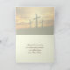 Beautiful inspirational quote Easter card depicts three wooden crosses on a hill with a beautiful golden sunset. It features the joy of Easter in the greeting, "Rejoice! Christ has Risen". The inside greeting can be modified.*