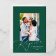 Rejoice Script Religious Christmas Photo Dk. Green Foil Holiday Card