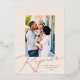 This gorgeous Christmas photo card features a subtle blush pink background with the greeting "Rejoice" in raised rose gold foil a single vertical photo. The greeting continues in flat white ink with "in the Lord always". Followed by your name. This design accommodates a single vertical photo on the front of the card. On the reverse side is the same pale pink background, to which you can add another photo or additional text by selecting the "edit using the design tool" option. Add the "wow" factor with a real pressed foil holiday card this year!