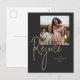 Celebrate and rejoice! These 5"x7" religious Christmas cards feature the greeting, "Rejoice," in gold letters on a black background with a spot to insert your favourite photo.