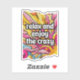Learn to take life as it comes. "Relax and enjoy the crazy." In the background is a bold pink and orange comic book print.