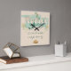 Sea Green and Bisque Beige Sand on a clock that reminds you to relax and take it slow. Marked out with lovely tropical details: a flower seahorse, floral bedecked flip-flops, and a seashell.