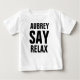 Customise this shirt with your child's name. Also customisable as to type of baby outfit. For best results, have it be the same width as "SAY".