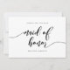 Stylish Will You Be My Maid of Honour card featuring the words "maid of honour" in a relax cursive script in black against a white background. Card has a black back side featuring overlapping white lines.