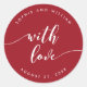 Wedding favour sticker featuring the words "with love" in a relax cursive script in white against an editable background colour (click customise to access).