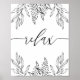 Relax Scripture Bathroom wall art poster- black and white leaves