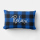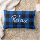 Relax Text on Black and Blue Plaid Lumbar Cushion