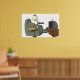 A very relaxed dog sitting watching television. This design looks really effective on these Poster