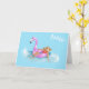 Relaxing in the pool on a hot pink flamingo float card