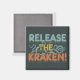 A bold and eye-catching t-shirt design featuring the legendary cry "Release the Kraken!" in a vibrant multicolor scheme. Each word pops with a different hue, capturing the thrilling energy of unleashing the mythical beast.
