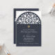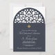 A beautiful, religious invitation, in navy blue and white, featuring a decorative arch. The gold cross can be dragged to any location, made larger or smaller (+ -), or eliminated. (<a href='https://www.freepik.com/free-vector/vector-wedding-card-laser-cut-template-vintage-decorative-elements_1317890.htm'>Designed by Freepik</a>). <br/><br/>The card is easy to customise with your wording, font andfont colour.<br/><br/>Not exactly what you're looking for? All our products can be custom designed to meet your needs at no extra charge.<br/><br/>Simply contact us at askcottonlamb@gmail.com.<br/><br/>Coordinating products available: Just ask us!