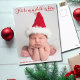 Elegant Christmas birth announcement postcard with a beautiful bible verse about Jesus in red cursive typography. For to us, a child is born. Isaiah 9:6. A lovely newborn baby holiday postcard with a full photo under the religious scripture on the front written in red. Add your child's second newborn photograph on the back along with your holiday message.