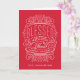 A red and white greeting card with lettering and typography on the cover for a religious Christmas greeting card.
