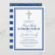 Religious Boy Silver Blue First Holy Communion Invitation