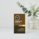 A brown shade column design is demarcated by a faux gold tab near the centre of the card.