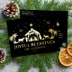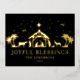 Religious Christmas Joyous Blessings Manger Holy Family Foil Christmas Postcards features a holy manger scene with Jesus with the text "Joyful Blessings" in a gold foil calligraphy script overlay. Personalise by editing the text in the text boxes provided. Designed by ©Evco Studio www.zazzle.com/store/evcostudio