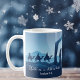 This beautiful blue drawing of the nativity scene is a gorgeous religious Christmas mug for a devout family. Unto us a child is born. Send holiday blessings with this gift for a Christian church.