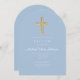 Religious Cross Baby Blue Script Boy Baptism Arch Invitation