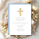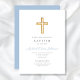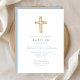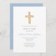 Religious Cross Baby Blue Script Boy Baptism Invitation
